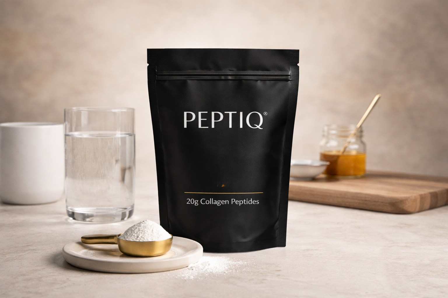 Our collagen peptides are designed to fit seamlessly into a daily ritual. Clean, minimal, and thoughtfully sourced, PEPTIQ® is not positioned as a miracle product or a medical solution. It is a refined wellness staple—made for those who care about what they put into their bodies and how it supports a high-performance lifestyle.